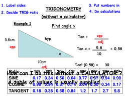 Trigonometric Ratios Without Calculator. How can i get the value of a trigonometric angle without using a calculator or a trigonometric table? I presume that what is meant is trigonometric angle is trigonometric ratio.