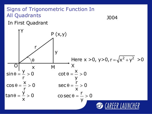 The quadrant determines the sign on each of the values. (note an angle at its simplest is the measure basic trig is also useful. By using the definitions of trig ratios, we have. Are there other mathematical ways that can point out the quadrant of the angle in one go?