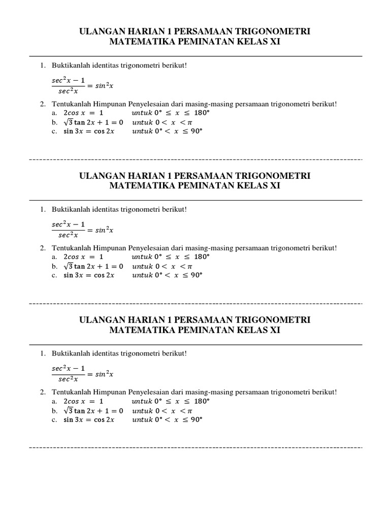 Persamaan Trigonometri Untuk Sec. Diketahui persamaan trigonometri √2 sin x + 1 = 0. Persamaan trigonometri merupakan persamaan yang mengandung perbandingan antara sudut trigonometri dalam bentuk x.
